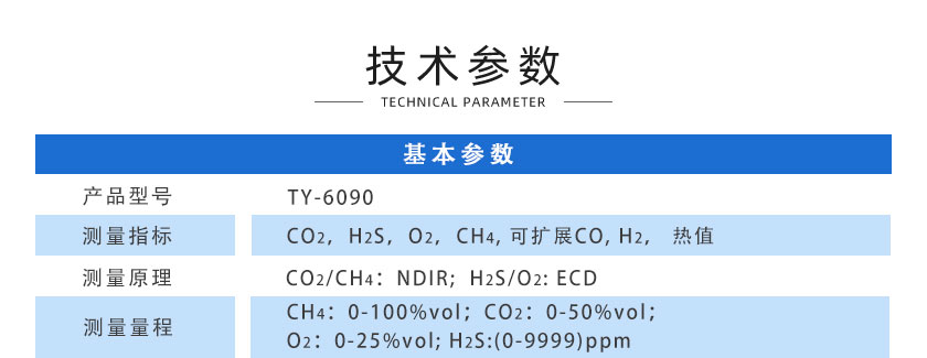 CO2,H2S,O2,CH4,可擴展CO, H2, 熱值 |