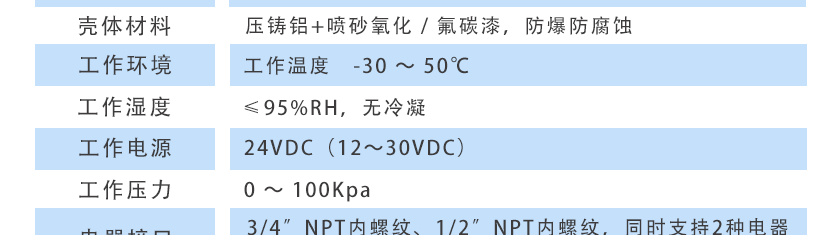 3/4″NPT內(nèi)螺紋、1/2″NPT內(nèi)螺紋,同時支持2種電器連接方式 |