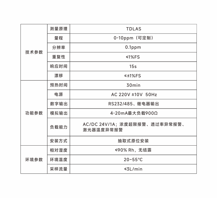 ● 超低濃度測量,分辨率可達0.1ppm;