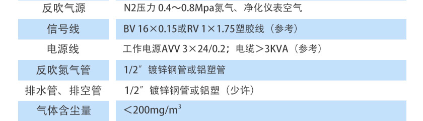 N2壓力 0.4~0.8Mpa氮?dú)狻艋瘍x表空氣 |