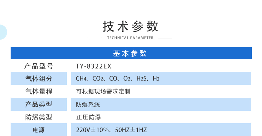 CH4、CO2、CO、O2、H2S、H2 |
