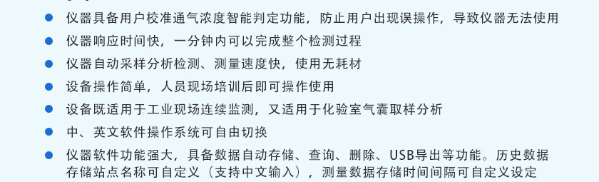 (11)設(shè)備既適用于工業(yè)現(xiàn)場(chǎng)連續(xù)監(jiān)測(cè),又適用于化驗(yàn)室氣囊取樣分析。